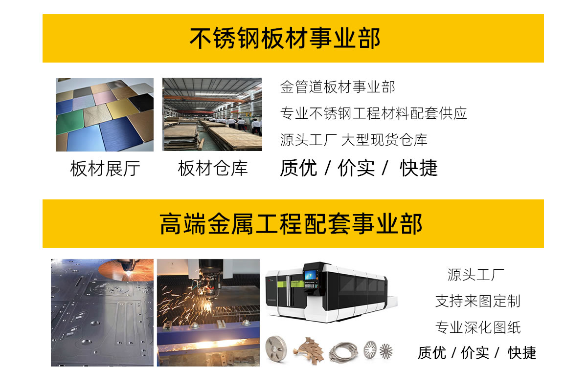 我們擁有自主核心產(chǎn)品體系,擁有二大事業(yè)部:高端金屬板材工程事業(yè)部、不銹鋼管道事業(yè)